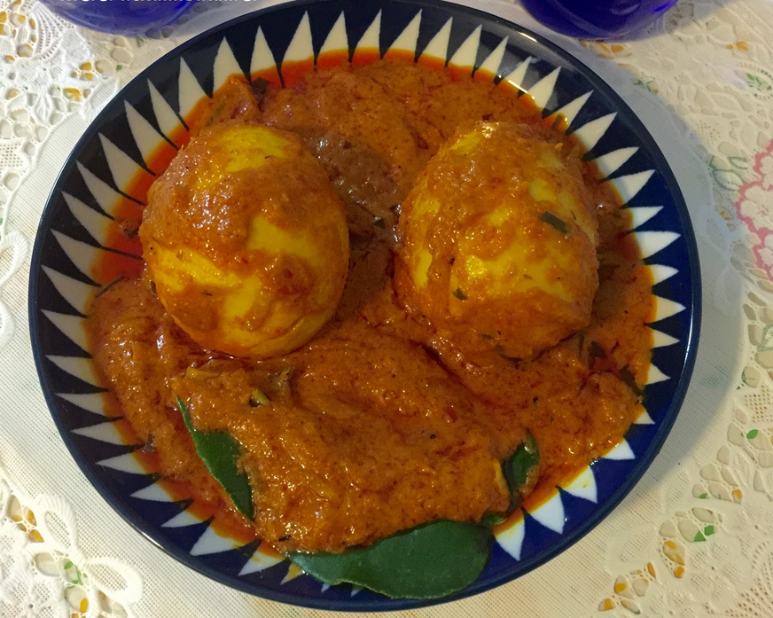 - Stir slowly and wait for the coconut milk to shrink so that the rendang spices seep into the eggs.